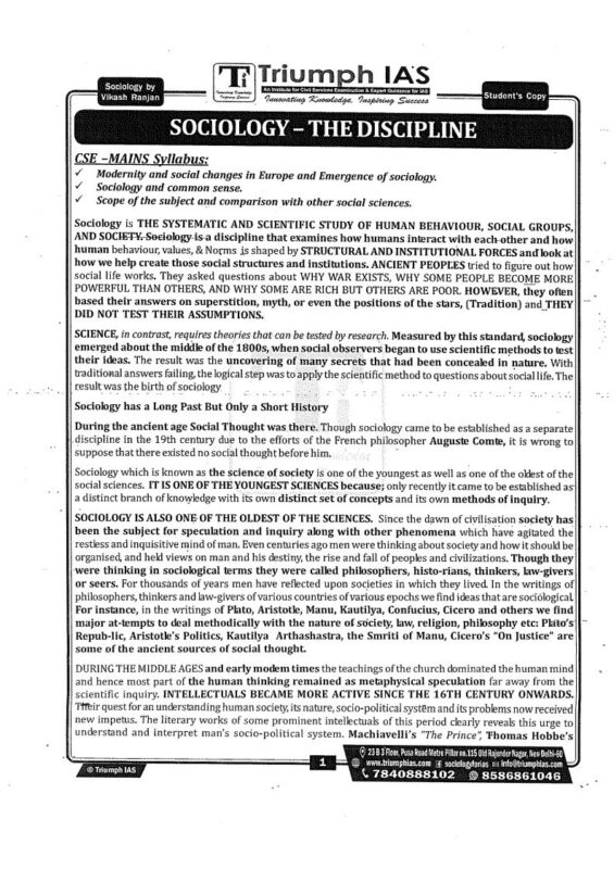 Sociology Optional Printed Notes Triumph IAS By Vikas Ranjan English Medium